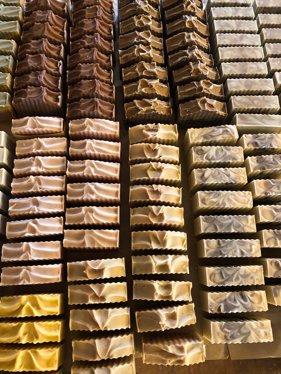 Did you know soap has a cure time? It takes handcrafted soap about 4-6 weeks to cure; to neutralize the lye, or to complete the saponification process in which the fats, water, and lye turn into soap. The water will evaporate, and the lye is non-existent in the final product. This will give you a nice hard and mild bar of soap. Check back weekly because something is always curing.